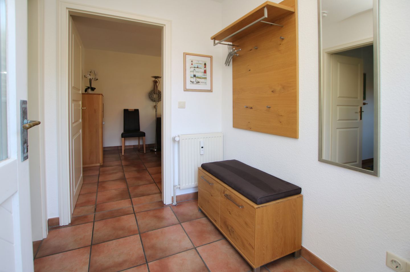 Die KÜCHENZEILE bietet alles für den täglichen Bedarf. Ein Esstisch mit 4 Stühlen befindet sich ebenfalls dort. Im FLUR befindet sich eine Garderobe. Diese Räume sind alle mit Fliesen ausgelegt.